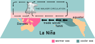 Time–height plot of monthly-mean, zonal-mean equatorial zonal wind (u) in m/s between about 20 and 35 km (22 mi) altitude above sea level over a ten-year period. Positive values denote westerly winds and the contour line is at 0 m/s. Radiosonde data from FU Berlin.